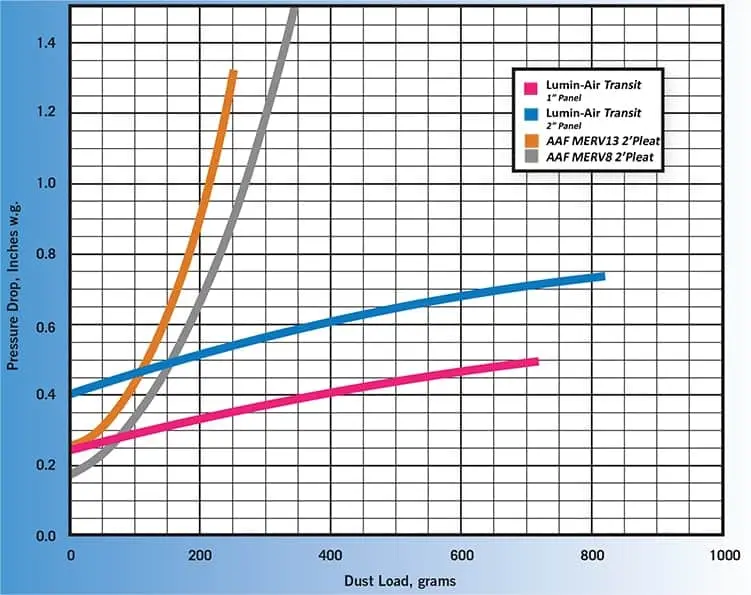 * Airflow measured by independent air balance contractors have repeatedly shown excellent airflow after installation of Lumin-Air’s filters, even at 3x standard bus filter life. Airflow reports can be provided upon request by completing our contact form below.